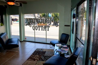 Tattoo Shop in Monterey. Outdoor Parking, Street Parking, Parking Lot.